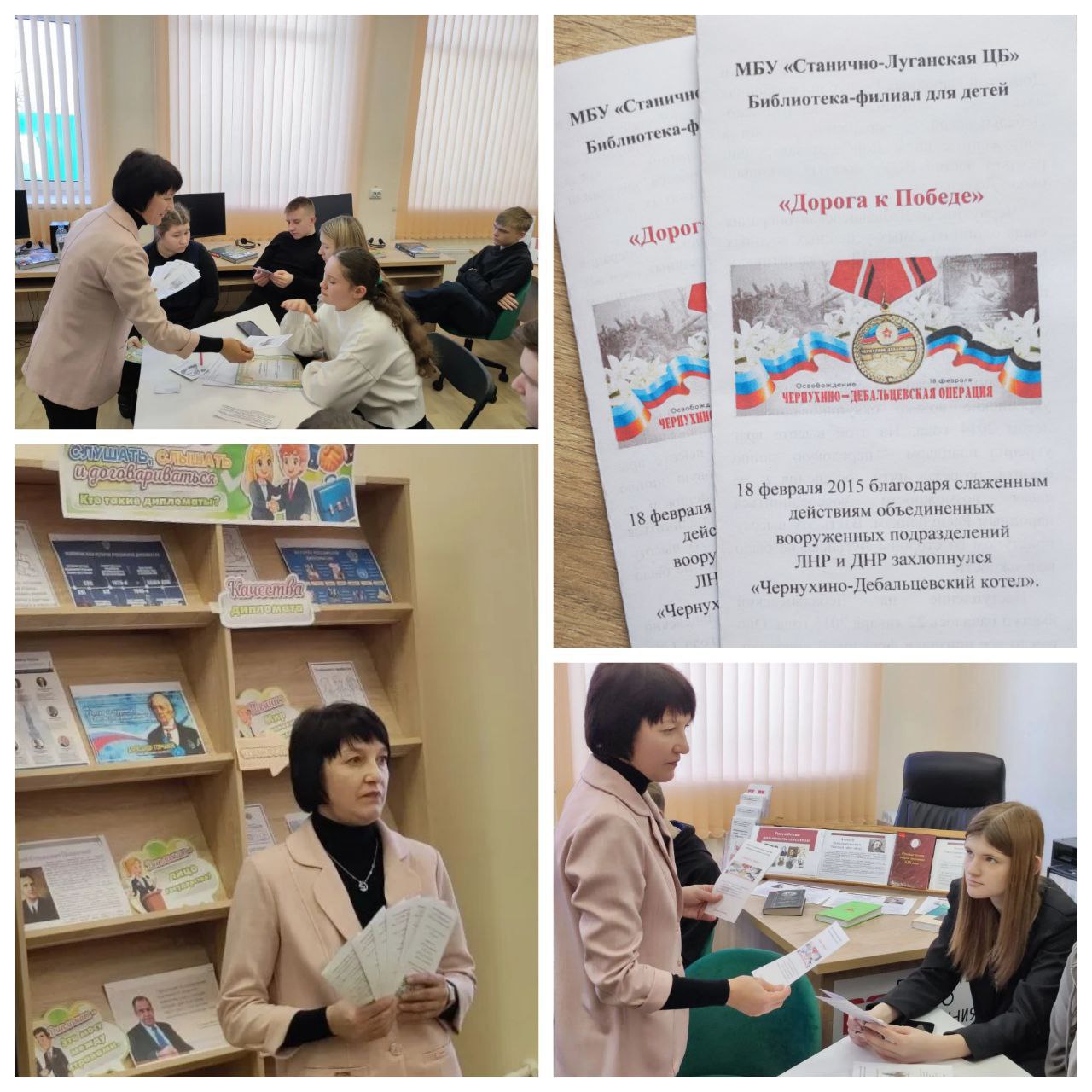 Сотрудники Станично-Луганской детской модельной библиотеки «Казачок» организовали, и провели патриотическо-просветительскую акцию «Есть память, которой не будет конца! Дебальцевско-Чернухинская операция», в рамках, которой были распространены буклеты «Дорога к Победе».