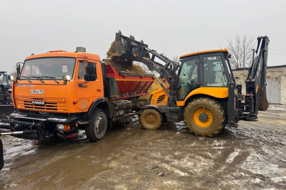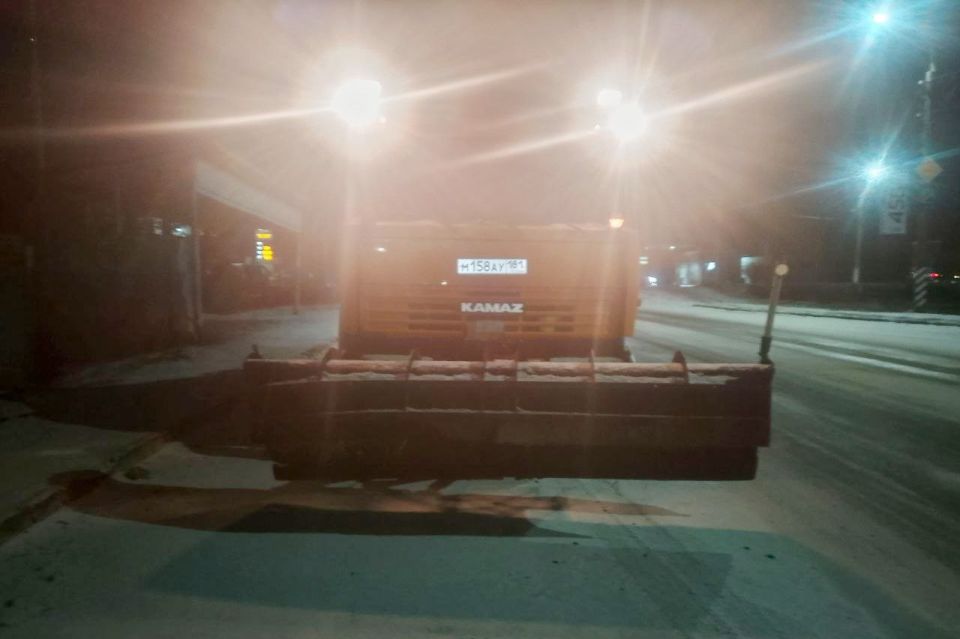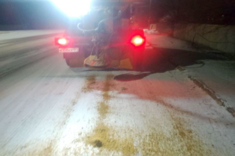 Для борьбы с обледенением на дорогах ночью были задействованы две комбинированные дорожные машины КамАЗ и один погрузчик. Было высыпано около 70 тонн пескосолевой смеси, что эквивалентно 10 «ходкам» КДМ КамАЗ.