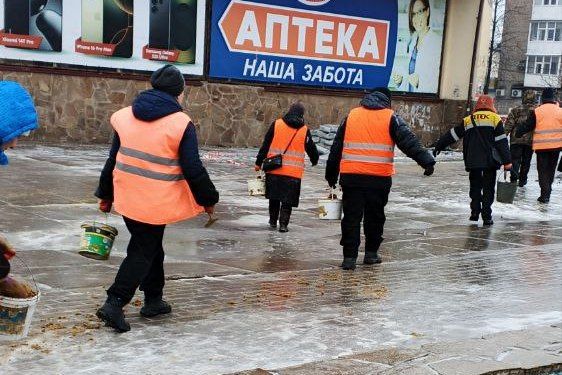 Параллельно с этим, 20 дворников для посыпки тротуаров использовали от 200 до 300 кг песка.