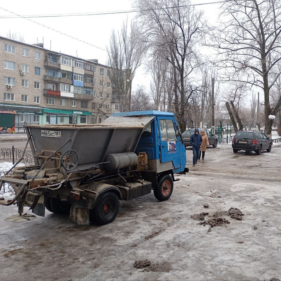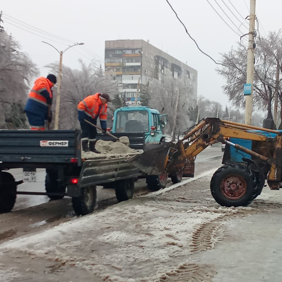 Днём дополнительно развезли посыпочный материал точечно по городу, чтобы завтра с утра, не тратить время на подвоз противогололёдной смеси, сразу приступить к обработке.