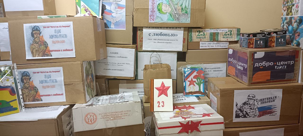 В городе Ровеньки завершилась акция « ащитникам с любовью», инициатором которой выступил Совет женщин города Ровеньки "Союза женщин России" при активной поддержке неравнодушных граждан, детей, молодежи, а также представителей политической партии «Единая Россия» и различных организаций