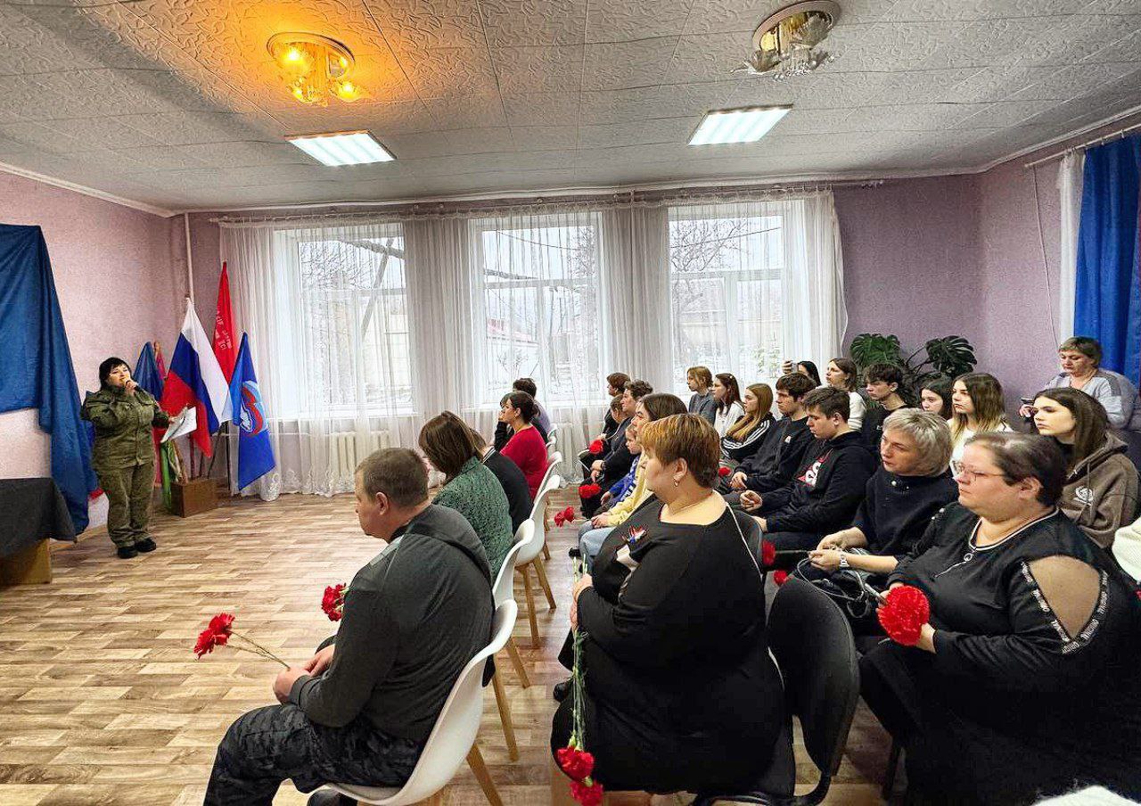 Заместитель главы Администрации Антрацитовского муниципального округа Елена Беседина, приглашенная на мероприятие, в своём обращении отметила значимость подвига земляков и выразила соболезнования всем, кто потерял близких.