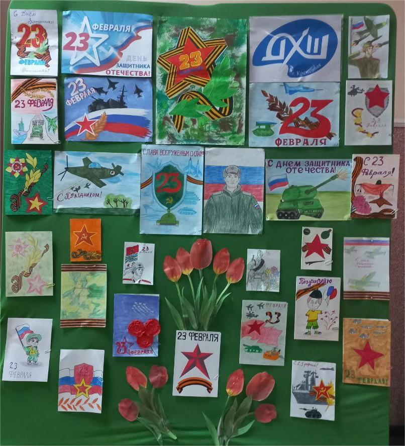 В преддверии Дня Защитника Отечества муниципальное бюджетное образовательное учреждение дополнительного образования Кременского муниципального округа «Детская художественная школа» превратилась в настоящий музей мужества и детских талантов!