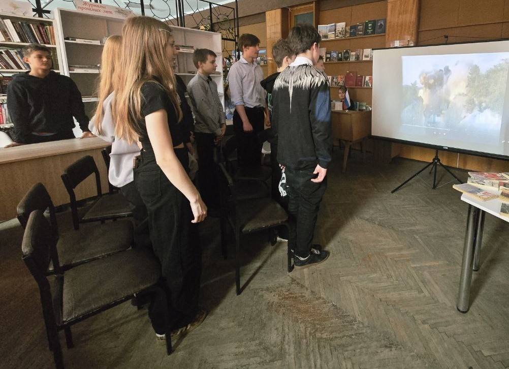 В завершении мероприятия учащиеся и сотрудники библиотеки почтили память погибших минутой молчания.