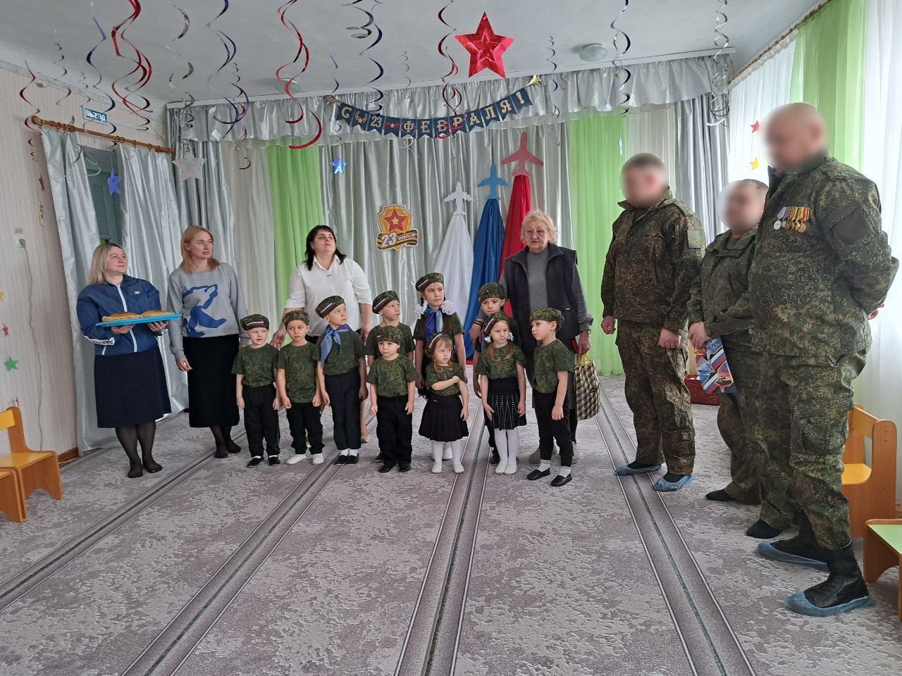 В преддверии Дня защитника Отечества маленькие воспитанники детского сада «Капитошка» пригласили к себе в гости единороссов и представителей Группировки Войск Центр.