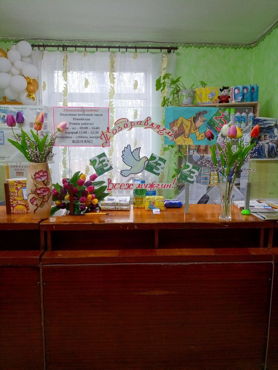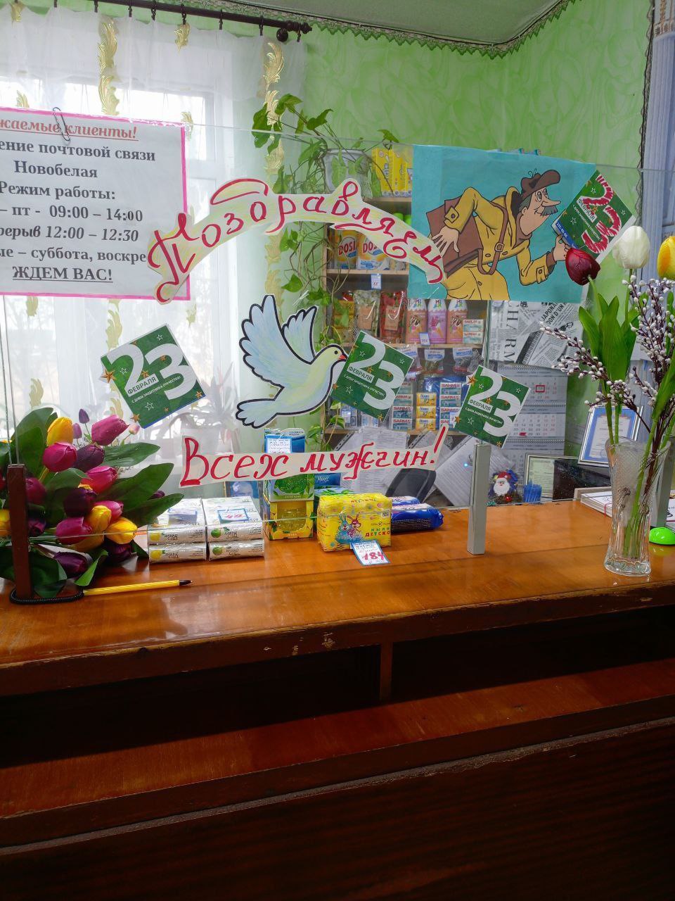 К 23 февраля почтовики Центра почтовой связи №4 (г. Старобельск) превратили обычные будни в маленький праздник. Особенно потрудились в отделении Новобелая (292310) Новопсковского м.о. – их зоны обслуживания клиентов оформлены с любовью!