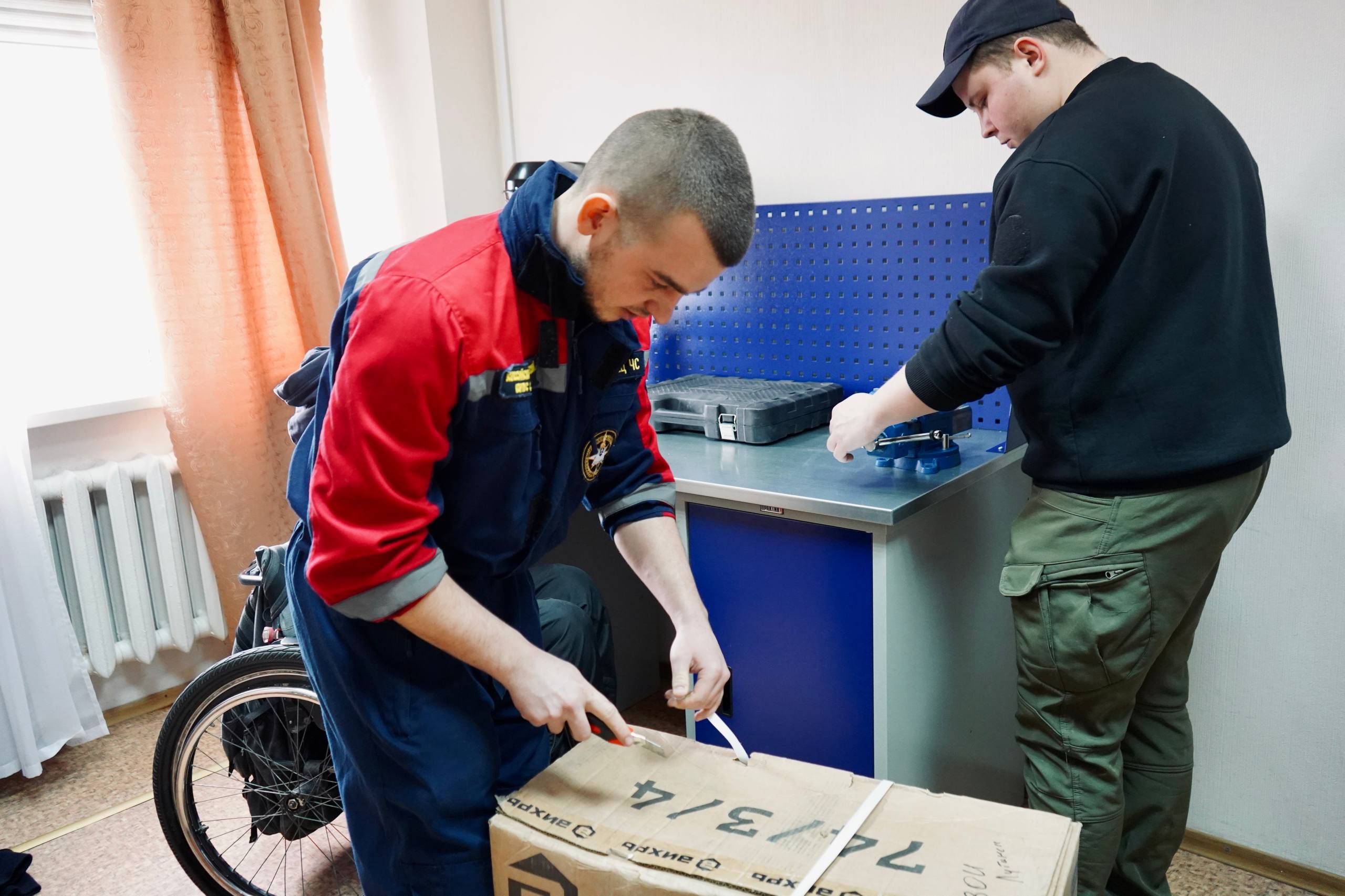 Студенты-спасатели приняли участие в сборке и установке мебели и оборудования, которое будет использоваться для ремонта средств передвижения подопечных организации.