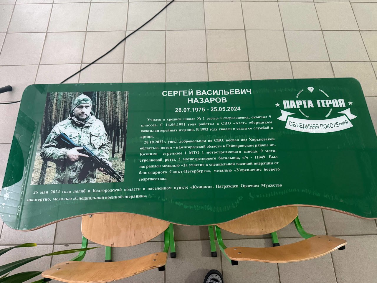 Парты Героя — память о наших земляках, настоящих героях, отдавших свои жизни за защиту Родины, участниках СВО Иване Матушкине и Сергее Назарове, погибших при выполнении воинского долга.