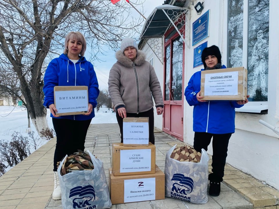 Также в этот день гуманитарную помощь своим землякам-участникам СВО передали активисты первичных отделений №16 села Дьяково и №26 поселка Фащевка партии «Единая Россия». В посылки для военнослужащих-земляков вошли: маскировочные сети, медикаменты, сухой душ, окопные свечи, тёплые носки, чай, сигареты, фрукты и даже настольная игра Домино.