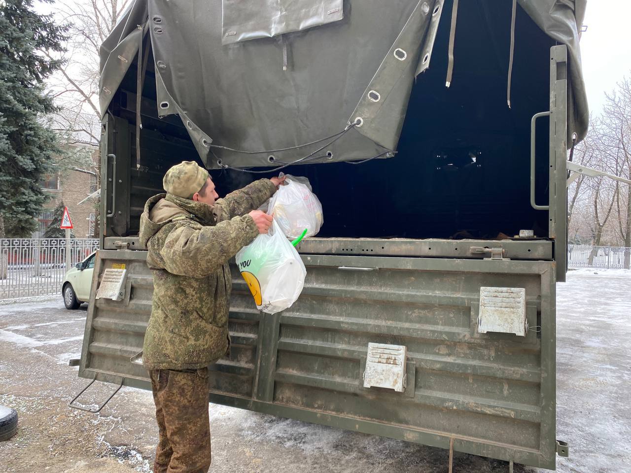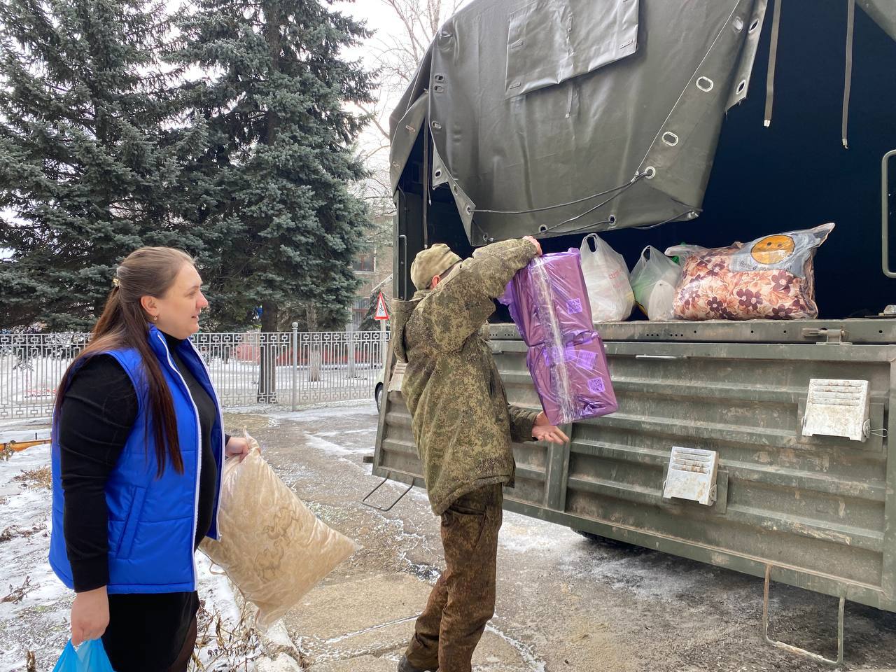 Собранную помощь передали военнослужащим 1435 штурмового полка. Кроме продуктов и тёплых вещей бойцы получили от активистов сухие души, окопные свечи и письма поддержки.