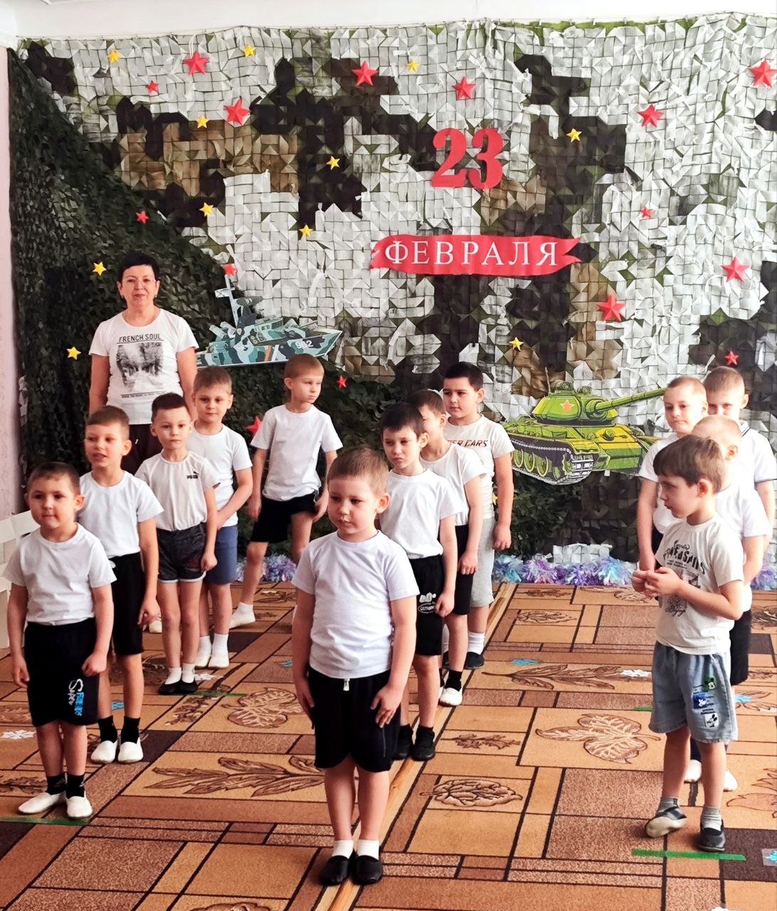 Воспитанники с увлечением знакомились с историей и традициями праздника через чтение художественной литературы, беседы и рассматривание иллюстраций. Мультимедийные презентации помогали детям визуализировать информацию, а отгадывание загадок о военной технике и различных родах войск развивало их кругозор и логическое мышление. Творческие занятия, такие как рисование и лепка, позволили малышам выразить свои впечатления и создать уникальные подарки для любимых пап, дедушек и старших братьев. С особым старанием и трепетом ребята мастерили эти сувениры, вкладывая в них свою любовь и благодарность.