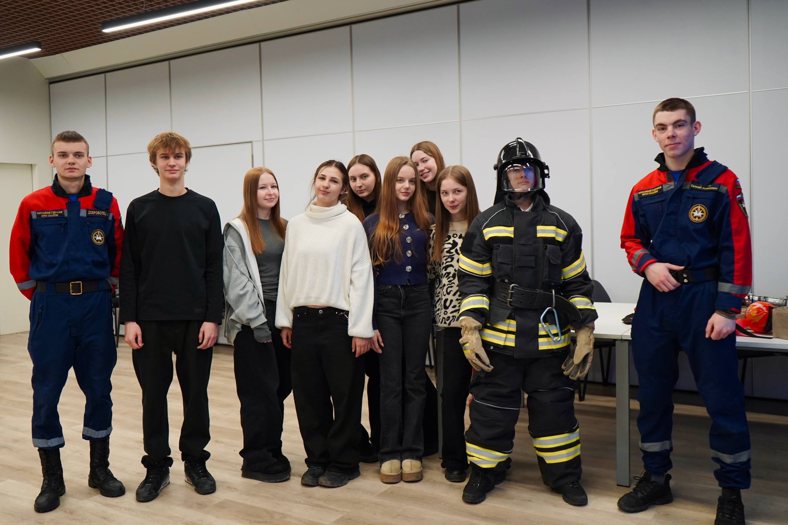 Дети смогли поближе познакомиться с первичными средствами пожаротушения и наполнением рюкзака добровольца, попробовали себя в роли спасателя, примерив боевую одежду пожарного, а также узнали больше о приеме Геймлиха.