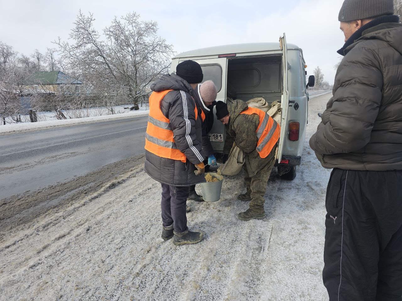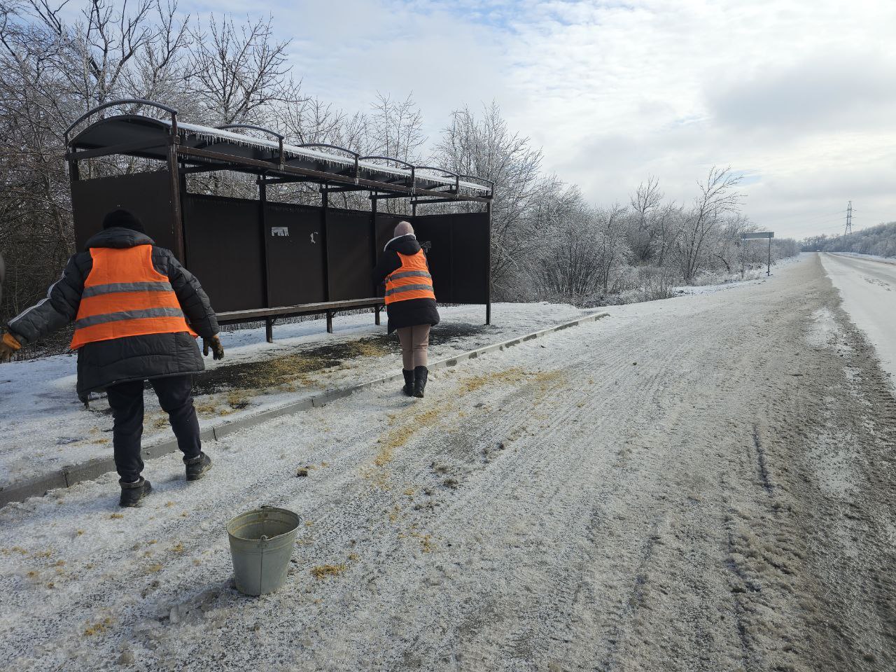 Также сотрудники МУП "ЖЭК" города Ровеньки провели работу в пгт Ясеновский: посыпали территории возле автобусных остановках и тротуары для обеспечения безопасности пешеходов.