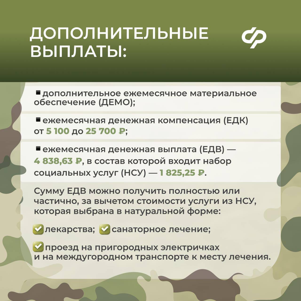 Важно: меры поддержки Социального фонда дополняют выплаты и льготы Министерства обороны РФ и других ведомств, при этом не заменяют и не отменяют другие предусмотренные государством меры поддержки.