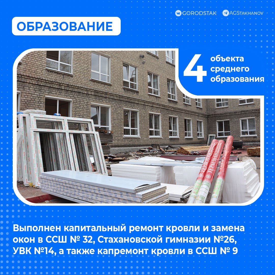 Проведены масштабные ремонты крыш и окон в детских садах, школах, учреждениях высшего, среднего профессионального и дополнительного образования.