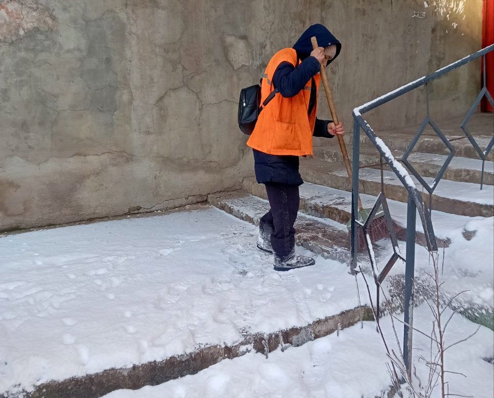 Специалисты Алчевского филиала Единой управляющей компании проводят работы по расчистке снега на придомовых территориях в микрорайонах города.
