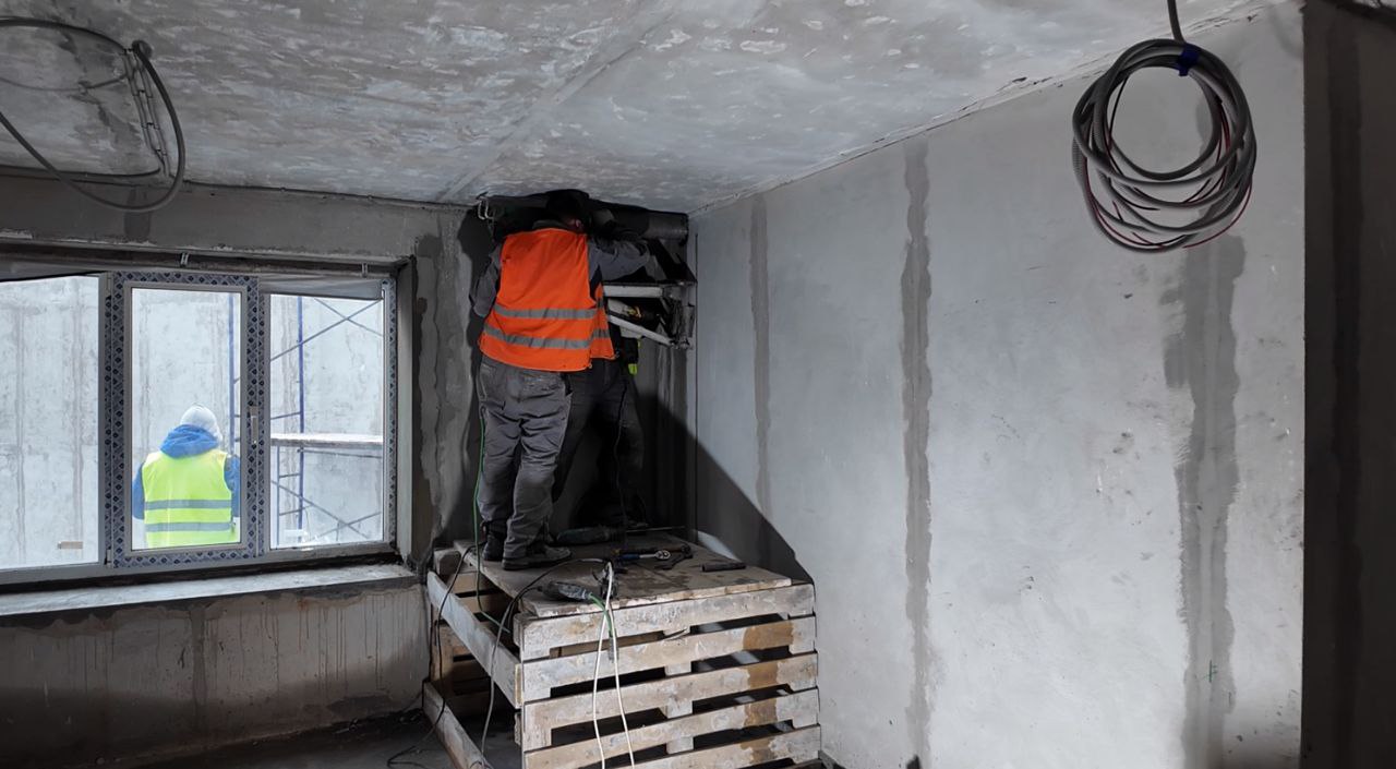 В здании Краснодонского ЗАГСа продолжаются электромонтажные и слаботочные работы. Кроме того, специалисты уже монтируют отверстия для дальнейшего монтажа вентиляционных систем. Это воздуховоды, вентиляционные решётки, вентиляторы, фильтры, управляющие устройства (система датчиков и контроллеров).