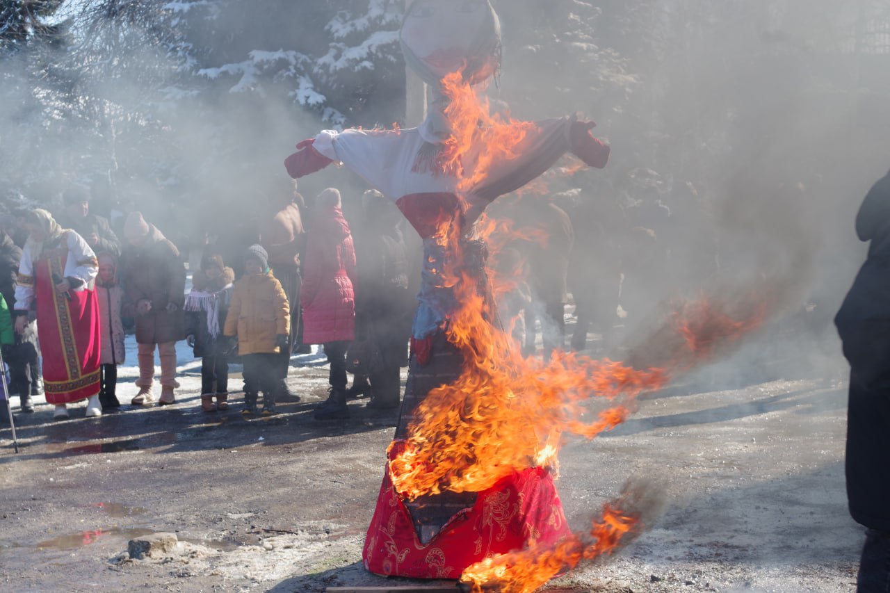 По славной традиции праздник завершился сжиганием чучела Масленицы — символом прощания с зимой и приветствия тепла. Под народные песни все водили большой хоровод, объединяя поколения в общем веселье.