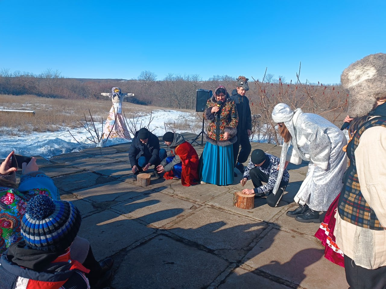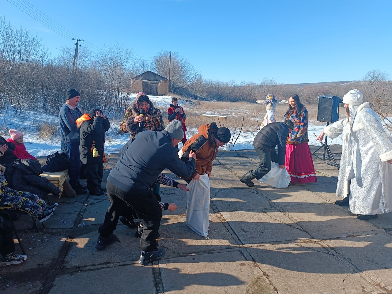 Сказочные герои приглашали жителей принять участие в конкурсно-игровой программе. Звонкие, задорные народные песни поднимали настроение и веселили публику. Веселые хороводы и народные игры раззадоривали гостей. Всех присутствующих угощали вкусными блинами и горячим чаем.