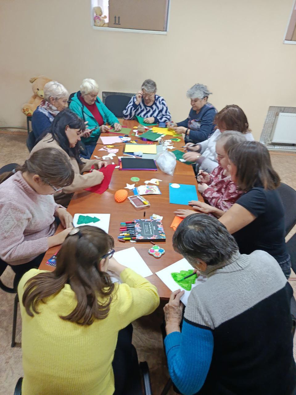Событие собрало участников в теплой и дружеской атмосфере, наполненной творчеством и взаимопониманием. Гости с удовольствием стали свидетелями выступления любительской театральной студии Ольги Лебединской «Театр для всех», затем принимали участие в создании поздравительных открыток.