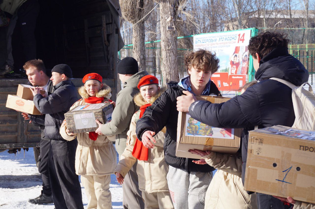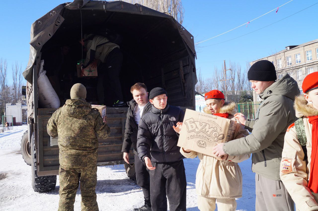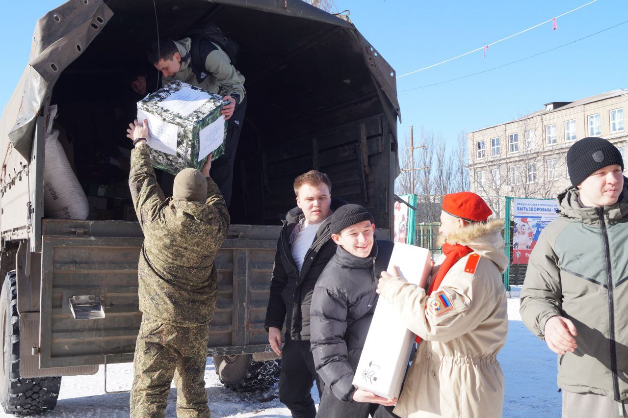 Традиционная передача подарков для военных в рамках этих акций состоялась сегодня на базе Стахановского стадиона «Победа». В погрузке подарков приняла участие молодёжь города.