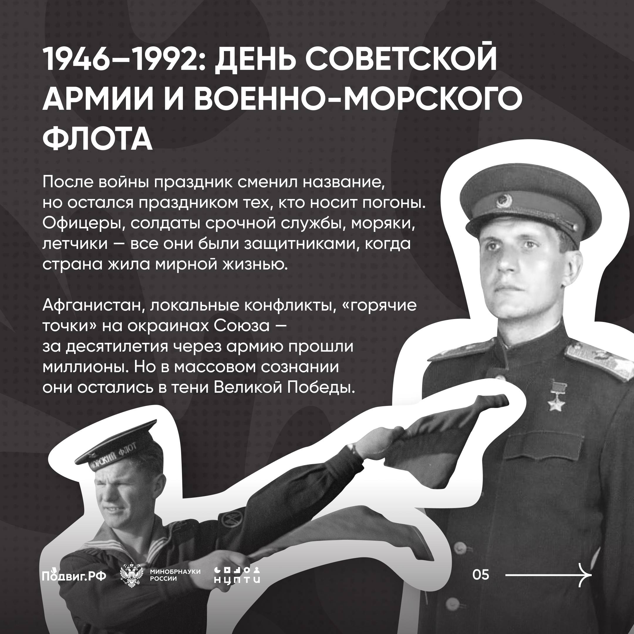 В карточках показали, как менялся образ защитника Отечества и кто стоит за ним сегодня.