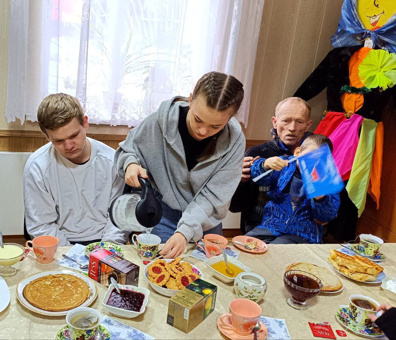 Организаторы мероприятия постарались создать атмосферу настоящего праздника. Все гости собрались в уютном помещении, где звучали песни, шутки и добрые пожелания. Конечно же, главным блюдом стали традиционные русские блины, приготовленные специально для гостей. Однако блины на этом праздничном столе были не простые, а приготовленные с волнением и трепетом детскими руками.