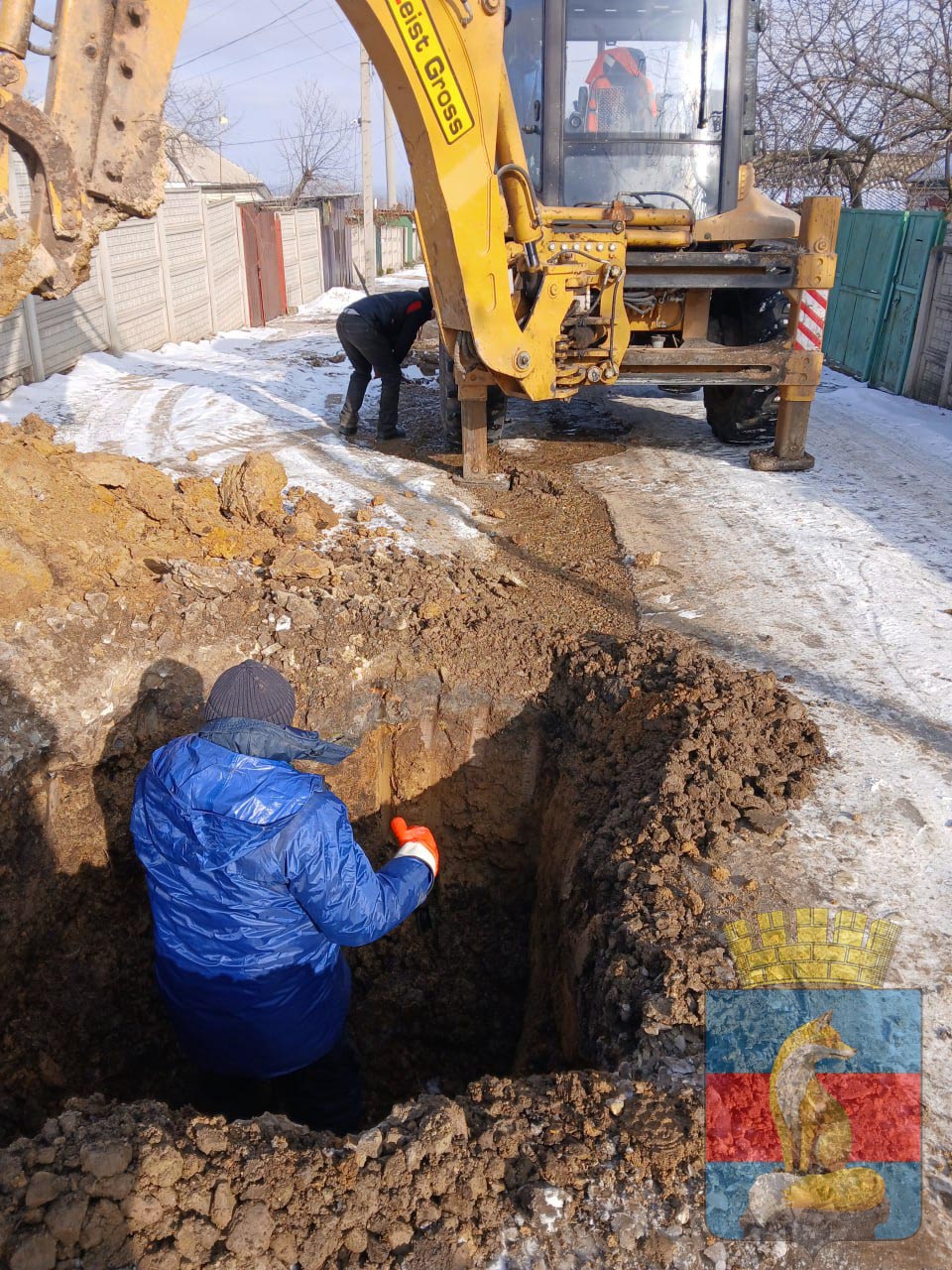 Сотрудники коммунального предприятия МУП «Водоканал города Лисичанска» с помощью специализированной техники устраняют порывы на очередных аварийных участках водопровода.