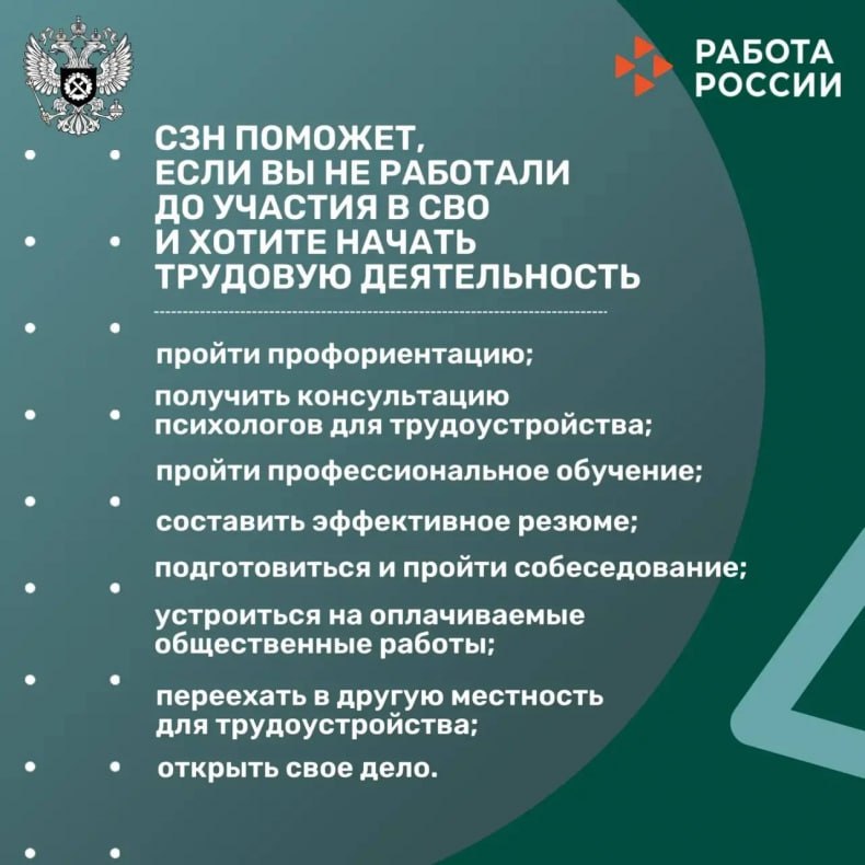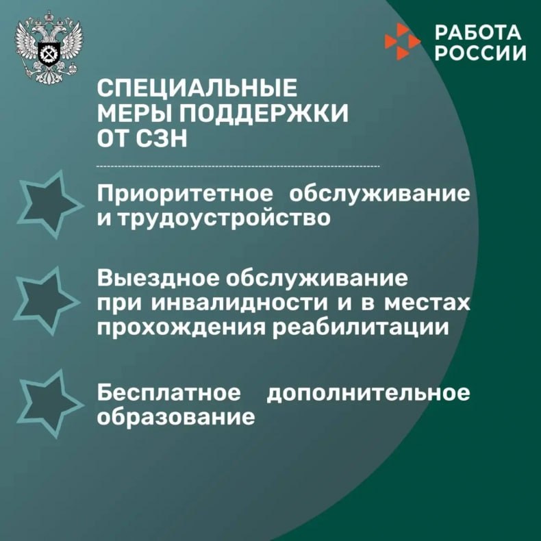Роструд напоминает: на портале «Работа России» работает специализированный раздел — «Трудоустройство и развитие карьеры ветеранов/участников СВО» - trudvsem.ru/informatio.... Здесь собрана актуальная информация о мерах поддержки, доступных через портал и в центрах занятости населения по всей стране.