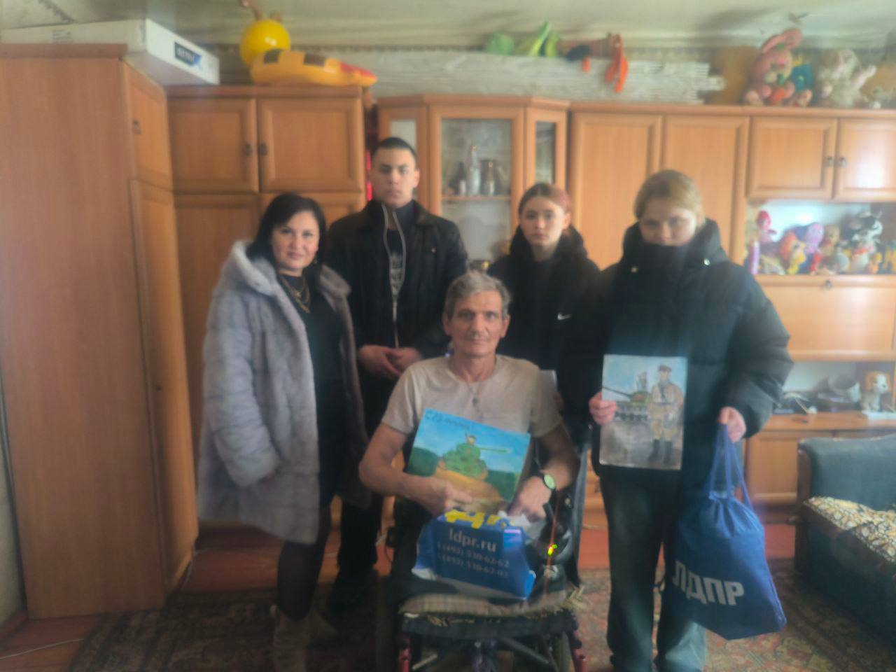 В день Защитника Отечества навестить участников боевых действий , имеющих ограниченныевозможности передвижения, отправились волонтеры ЛДПР и представители молодежного волонтерского движения.