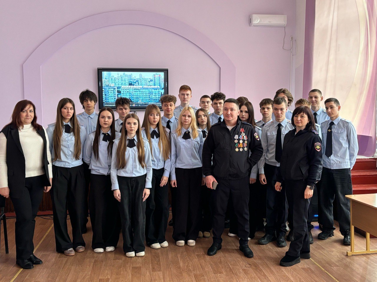 Гостями школы стали сотрудники полиции – Довженко Наталья и Квитко Вячеслав. Особую значимость этой встрече придавал тот факт, что Вячеслав Игоревич является и участником специальной военной операции.