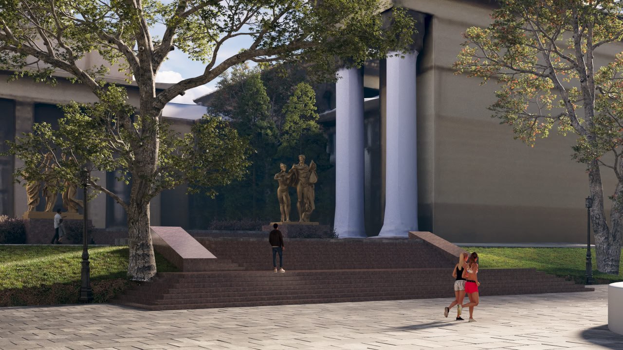 Здесь находятся корпуса Академии культуры, несколько скульптур и бюст лётчика Александра Молодчего.