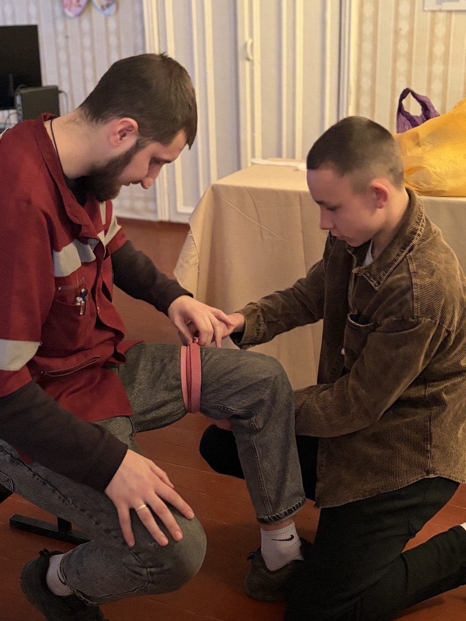 19 февраля в «Ровеньковской школе №5 им. Молодой гвардии» совместно со специалистом Территориального отделения «Республиканского центра занятости населения ЛНР» в г. Ровеньки фельдшеры и инструкторы первой помощи Школы медицины катастроф Тарас Зюбанов и Яна Щербакова провели для ребят тематическое занятие на тему: «Один день из жизни».