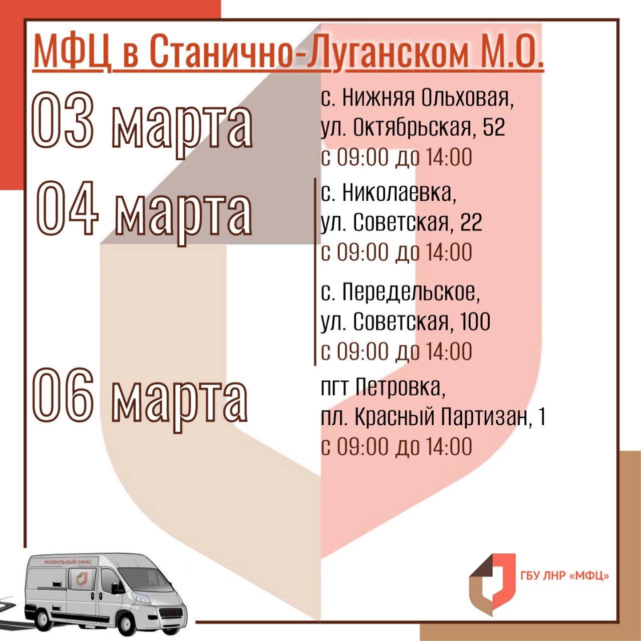 Смотрите актуальный график мобильного офиса МФЦ ЛНР на 0208 марта в карточках