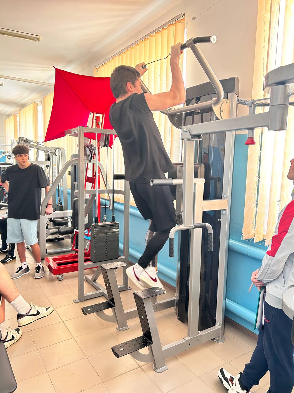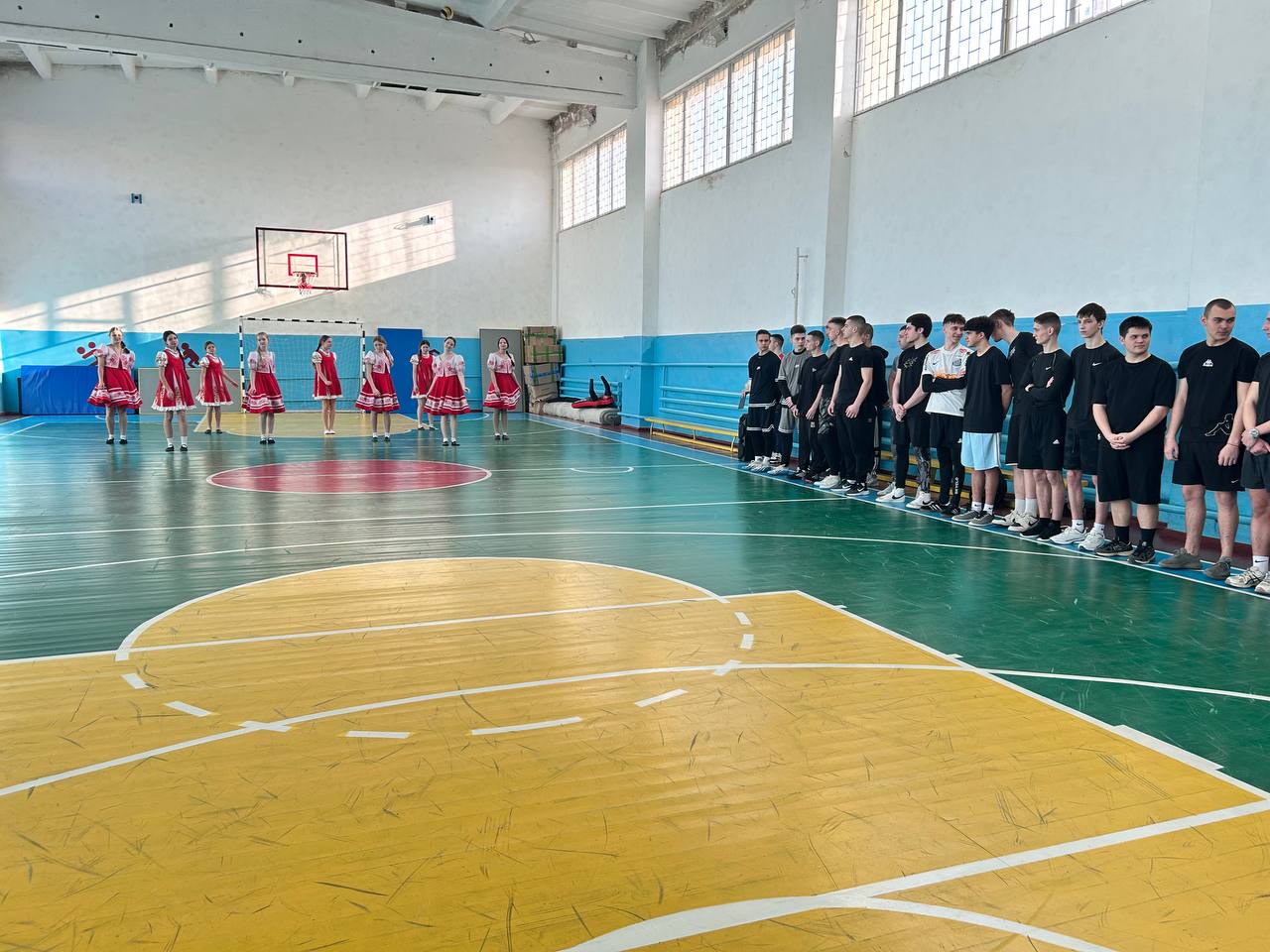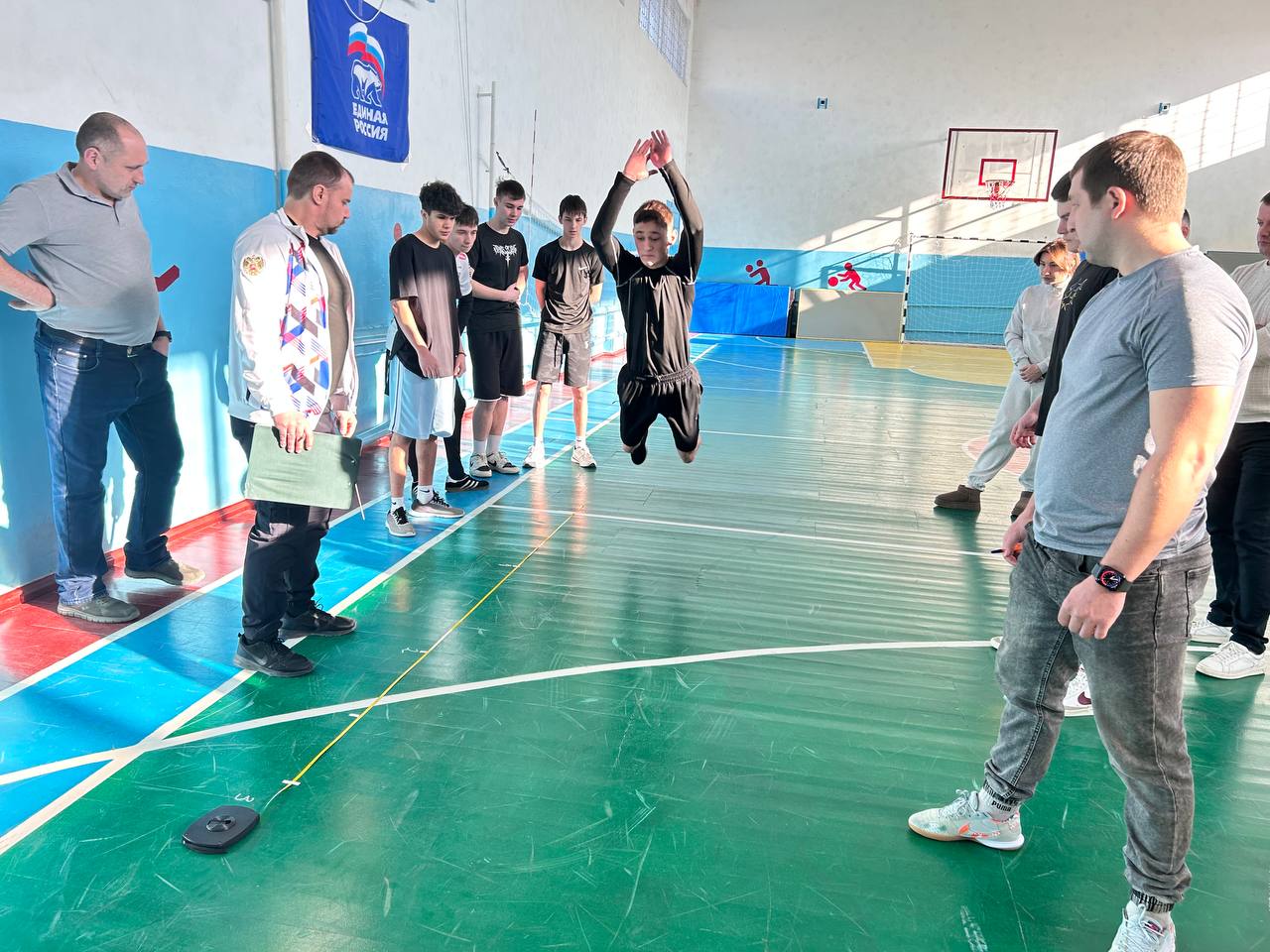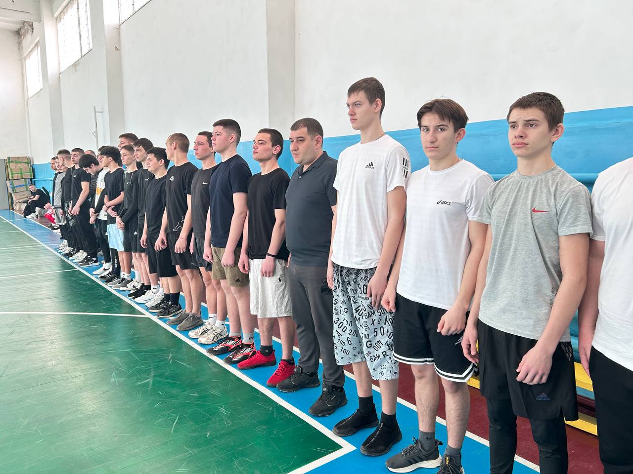 В спортивном зале собрались самые сильные, смелые ребята. Соревнования проходили в лично-командном зачете. Ребята соревновались в подтягивании, прыжках в длину с места, челночном беге, гиревом спорте, перетягивании каната.