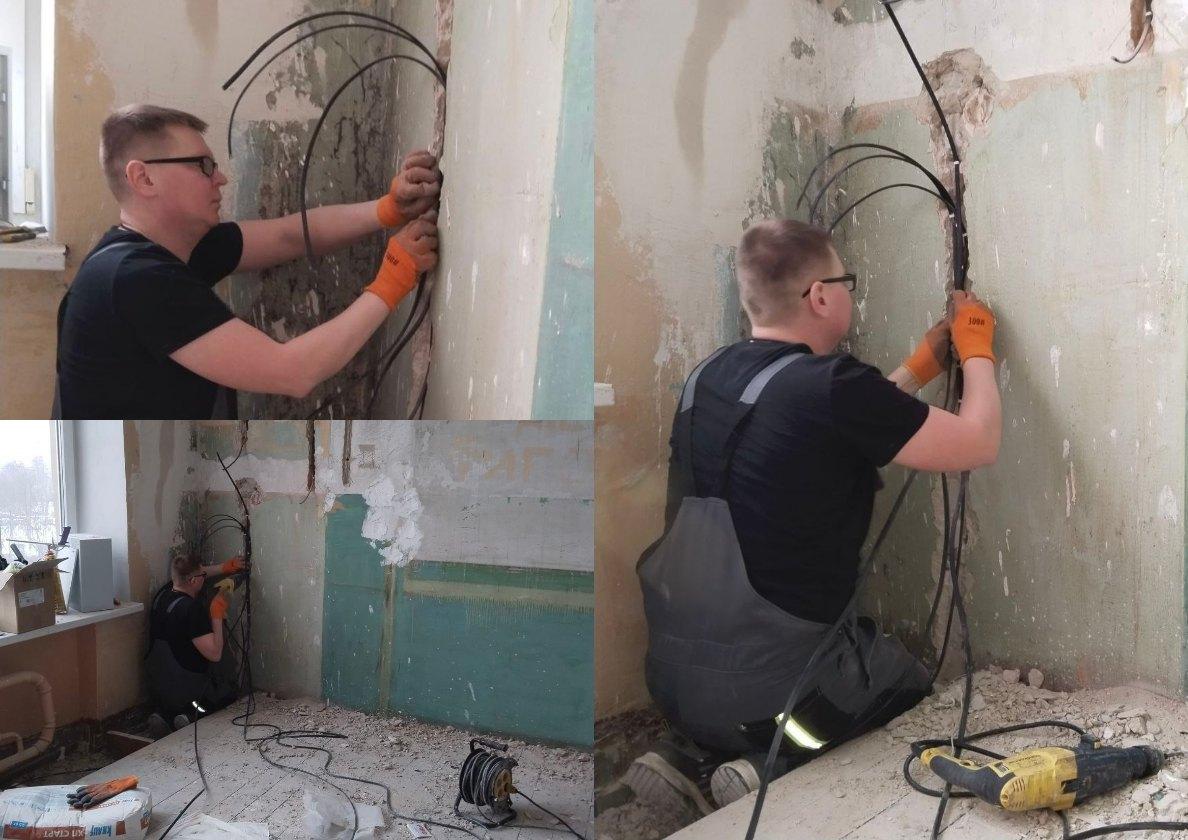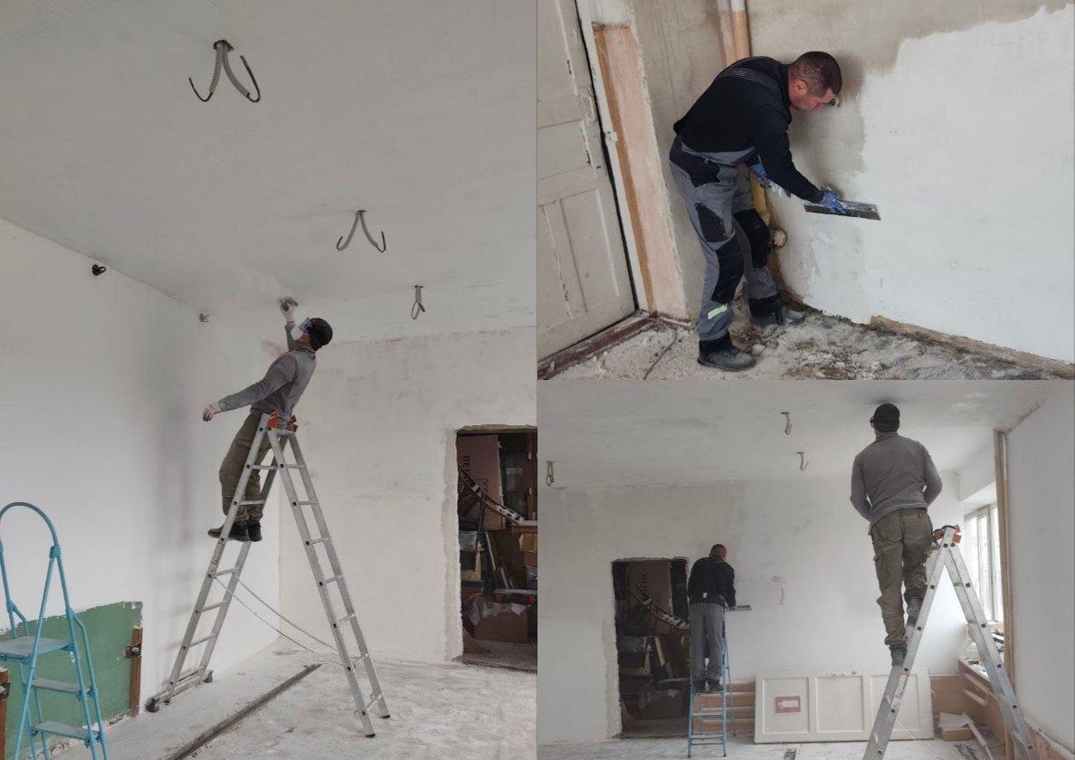 Как рассказал старший аварийной бригады от Удмуртии Михаил Шушков, в настоящий момент строители находятся на стадии отделочных и электромонтажных работ: специалисты занимаются грунтовкой, шпаклевкой и тщательным выравниванием стен и потолков, готовя поверхности к финишной отделке. Также выполняется штробление стен для обновления проводки. Установлены распределительные коробки и подрозетники.