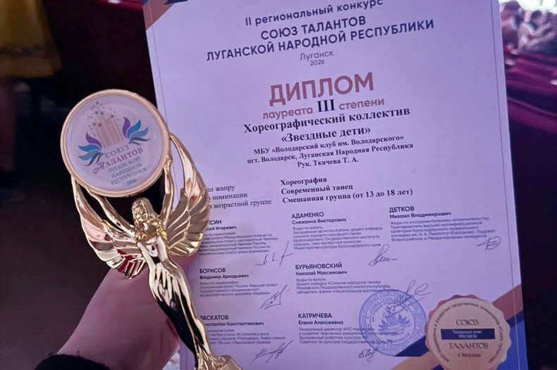 Хореографический коллектив Володарского клуба «Звездные дети» отправились в творческую поездку на выходных в город Луганск на XXXII Международный фестиваль музыки и танца «Союз талантов России» II Регионального конкурса «Союз талантов Луганской Народной Республики», где представили хореографический номер «Бабки Ежки».