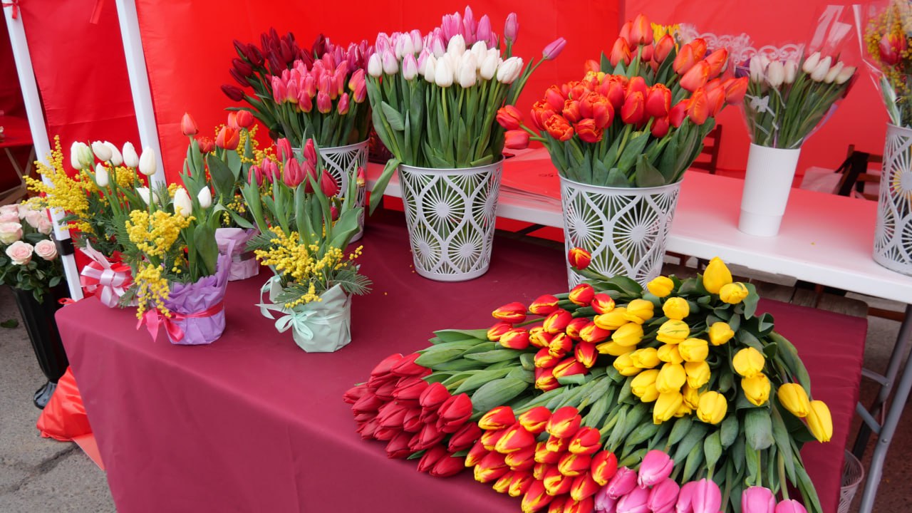 Здесь представлено множество цветов: от традиционных весенних тюльпанов и ароматной мимозы, до хризантем, гиацинтов, фиалок и примул. С самого утра луганчане охотно изучают это цветочное разнообразие, получая частичку весеннего настроения и радости.