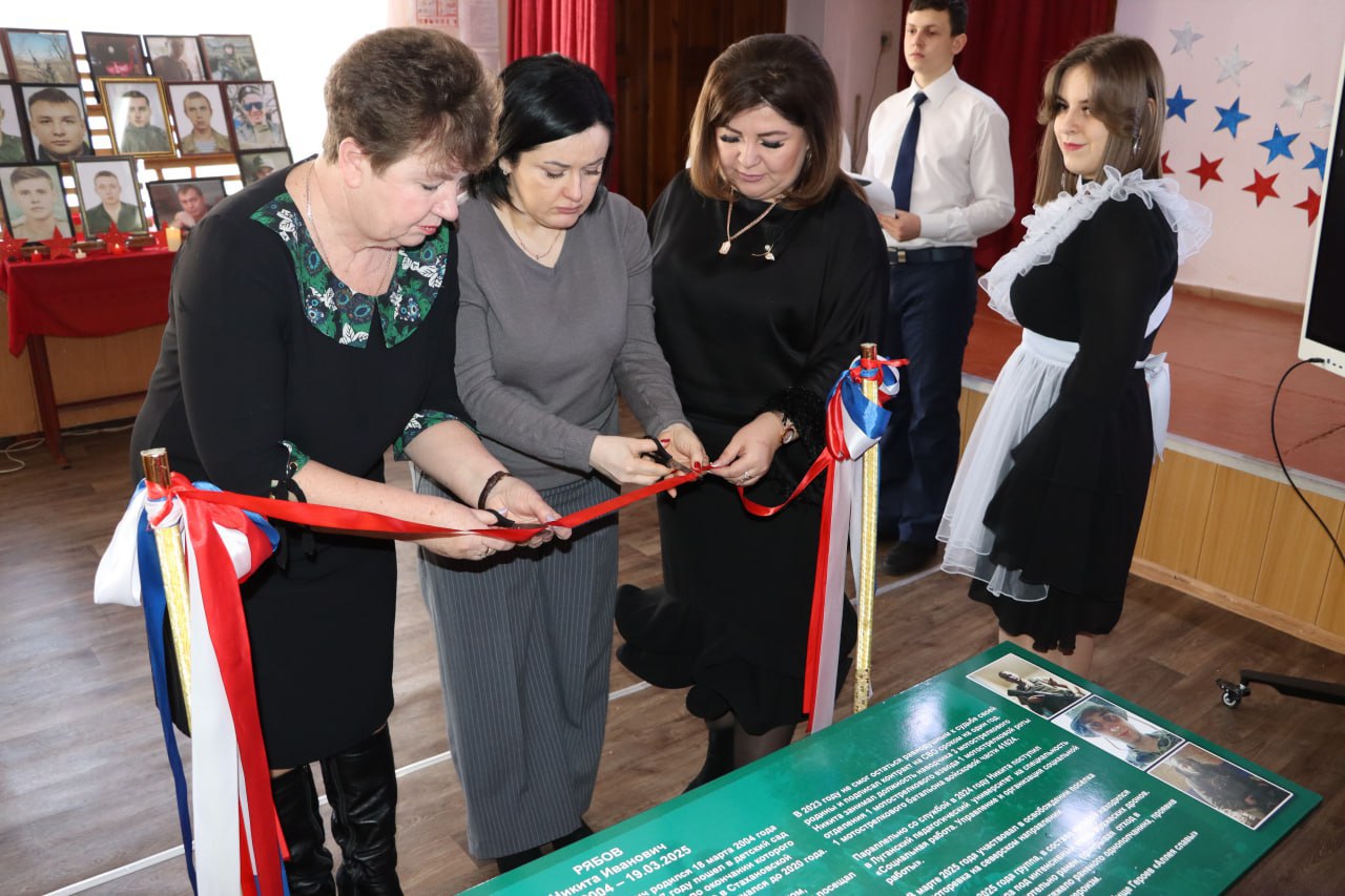 Право перерезать красную ленточку было предоставлено маме Героя Елене Эдуардовне, Тамаре Ковтун и директору школы Татьяне Кашпур.