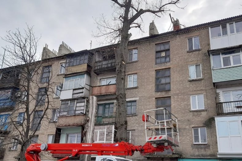 В Червонопартизанске сотрудники МУП «Благоустройство» Свердловского муниципального округа произвели работы по обрезке аварийного дерева по улице Терешковой, 6.