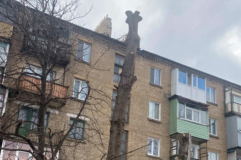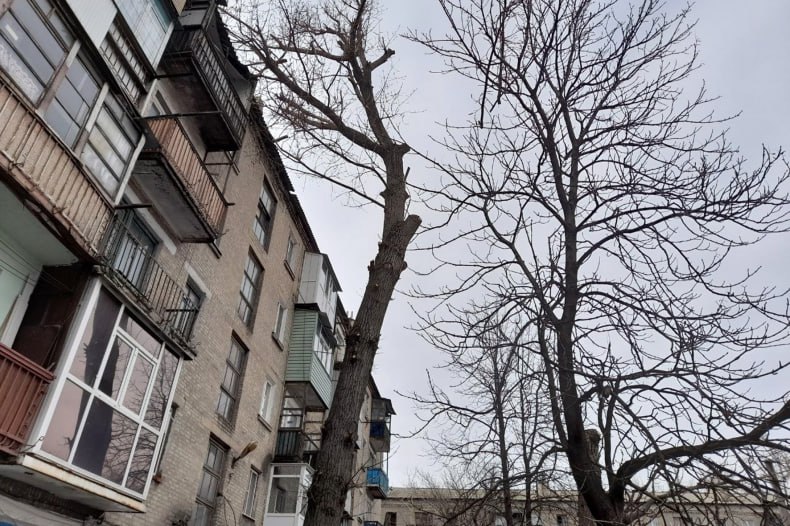 В городе Червонопартизанске обрезали аварийное дерево