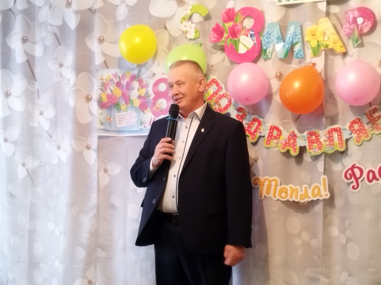 С поздравительными словами к прекрасным дамам обратился Черкесов Виктор Алексеевич, начальник отдела по жизнеобеспечению пгт Краснодон, пгт Энгельсово, пгт Семейкино. В своей речи он поблагодарил женщин за их труд, заботу и поддержку, отметил важность роли женщины в семье и обществе.