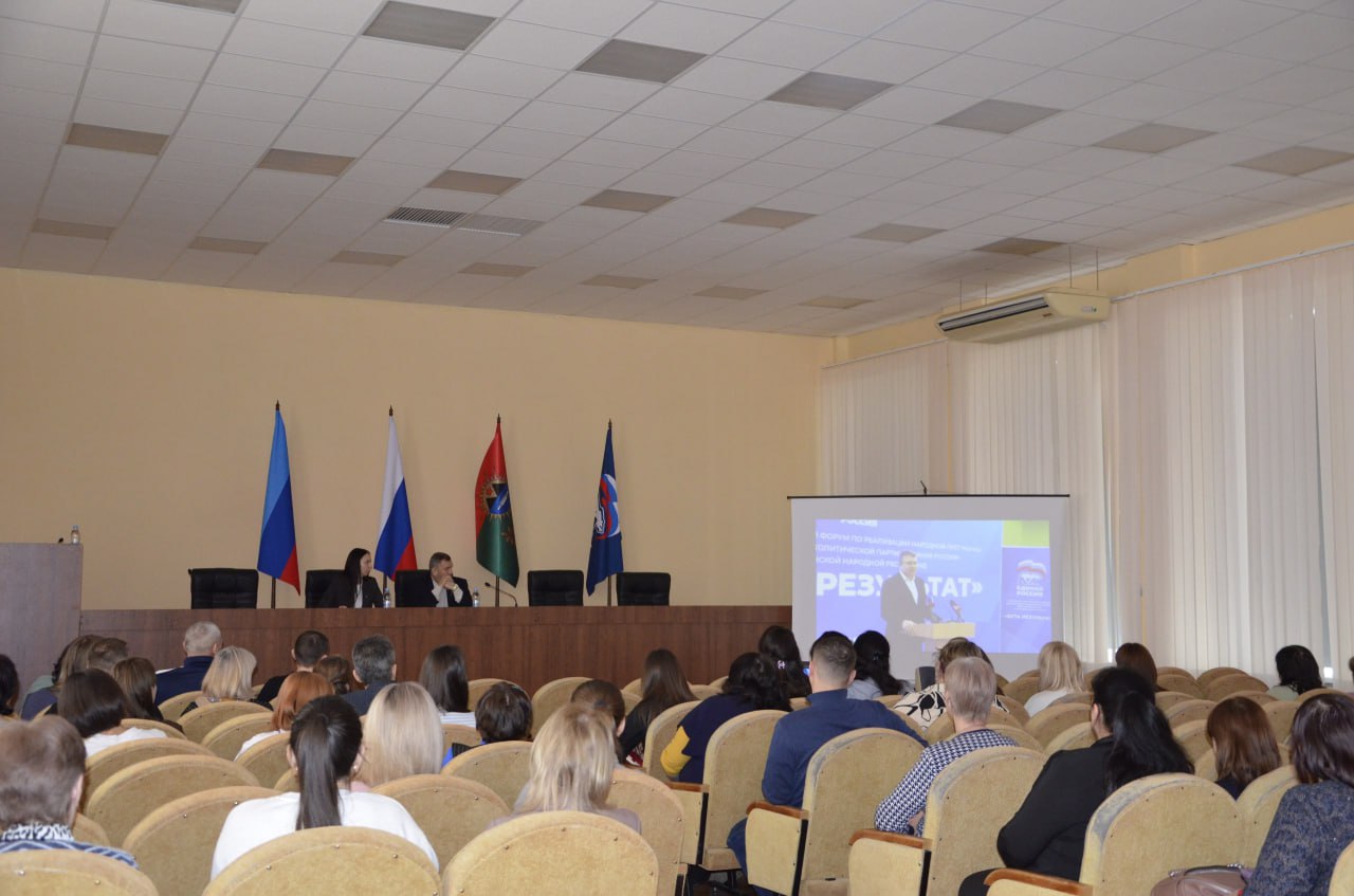 В Лутугинском муниципальном округе состоялось обсуждение итогов регионального отчётного форума по реализации народной программы Всероссийской политической партии «Единая Россия» в Луганской Народной Республике «Есть результат». В работе приняли участие секретарь Лутугинского местного отделения партии «Единая Россия» Евгений Бондарь, председатель Совета депутатов Лутугинского муниципального округа Алёна Лумеровская, секретари первичных отделений, депутаты, активисты партии и жители.