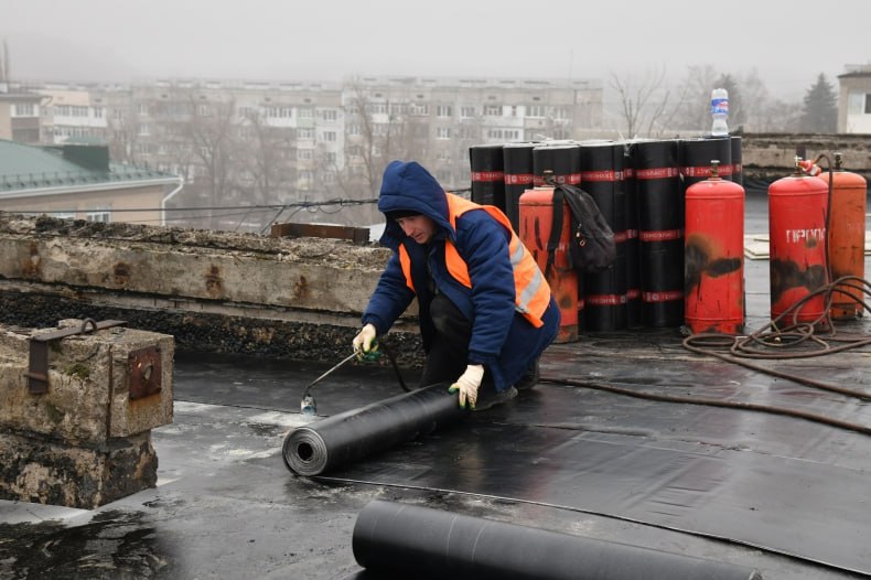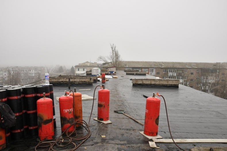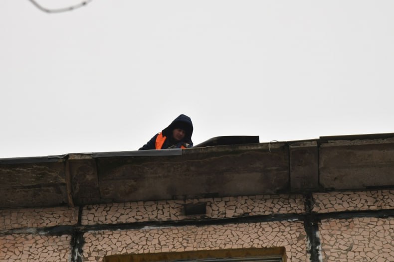 Подрядная бригада работает на доме №27, где общая площадь обновляемого покрытия составляет 1075 квадратных метров. На данный момент строители ведут демонтаж старого, пришедшего в негодность кровельного покрытия и укладывают слой нового кровельного «пирога».