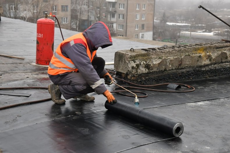 Красноярские строители обновляют кровлю многоквартирного дома в Свердловском округе