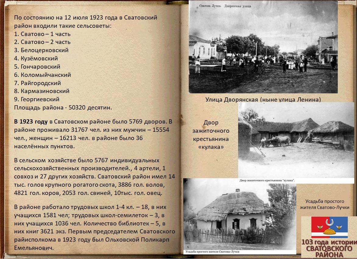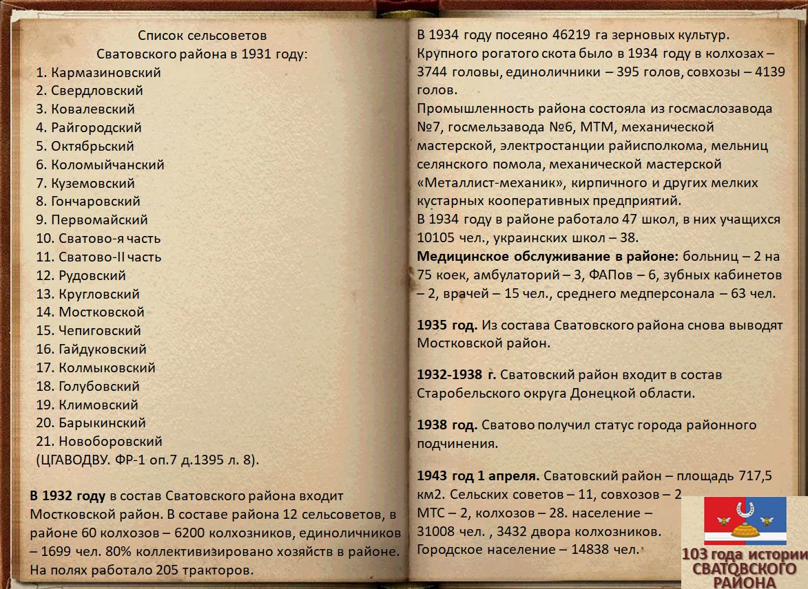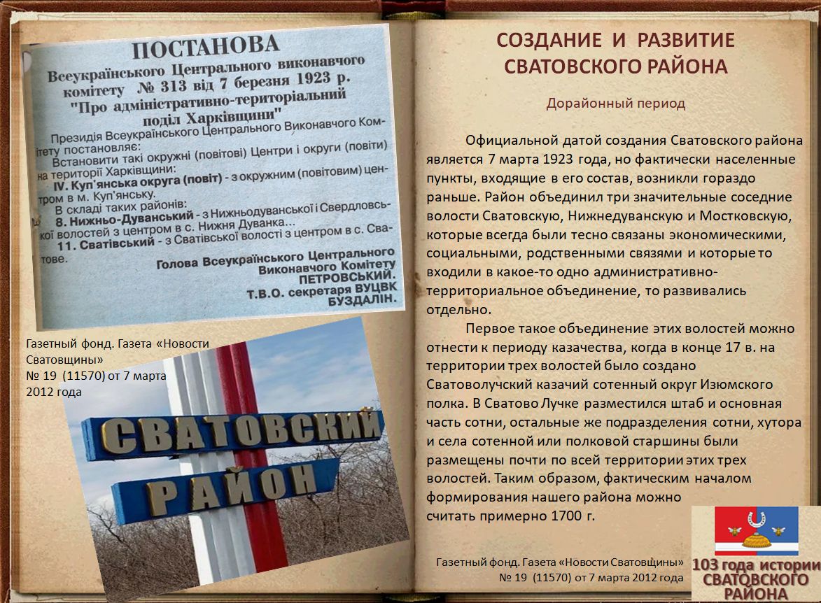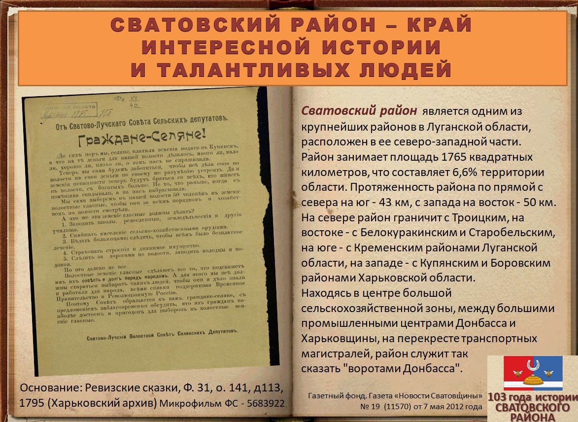 Электронная выставка архивных документов ко Дню образования Сватовского района «103 года истории Сватовского района»