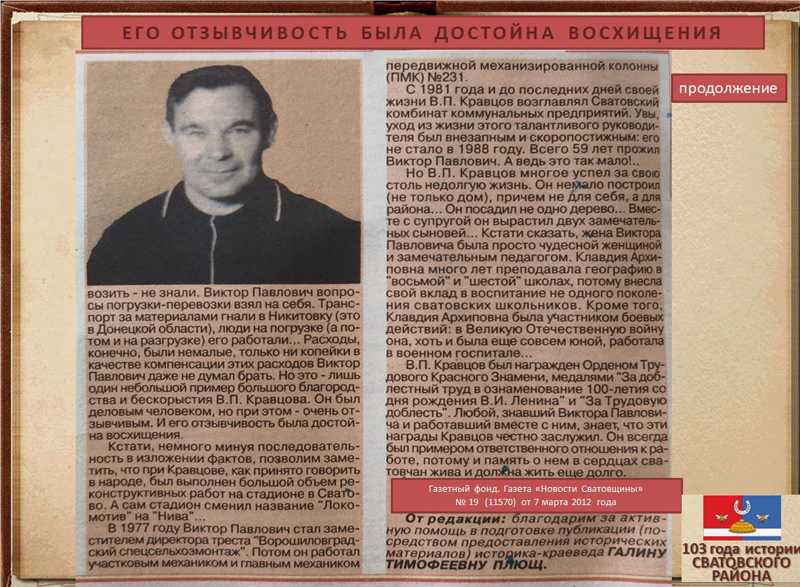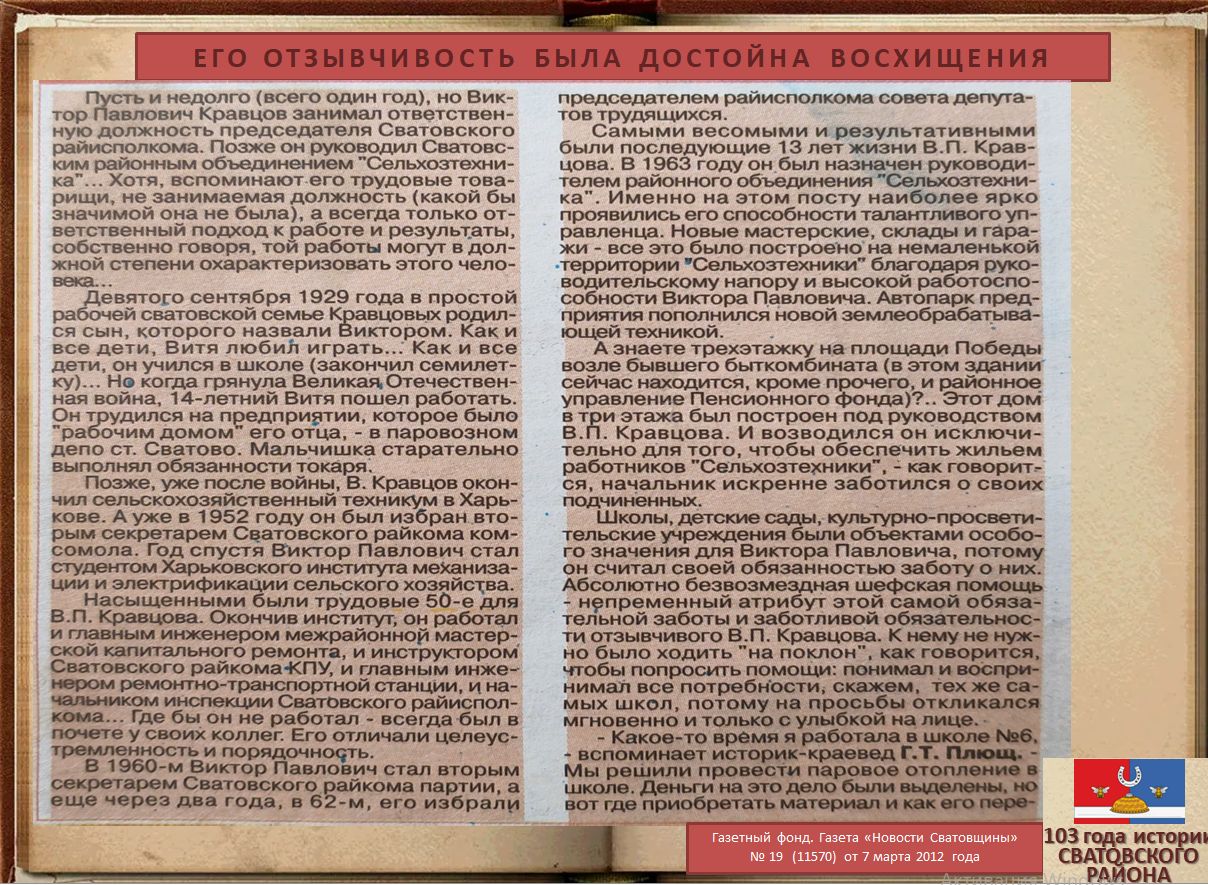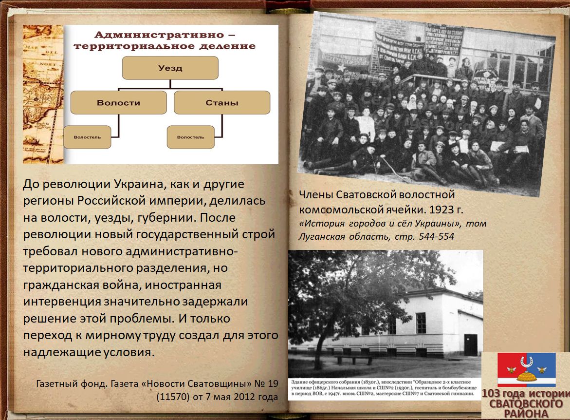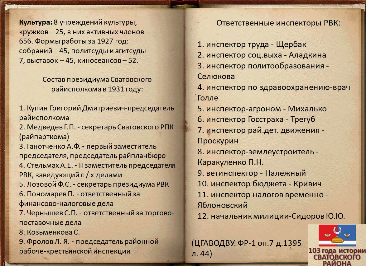 Электронная выставка архивных документов ко Дню образования Сватовского района «103 года истории Сватовского района»