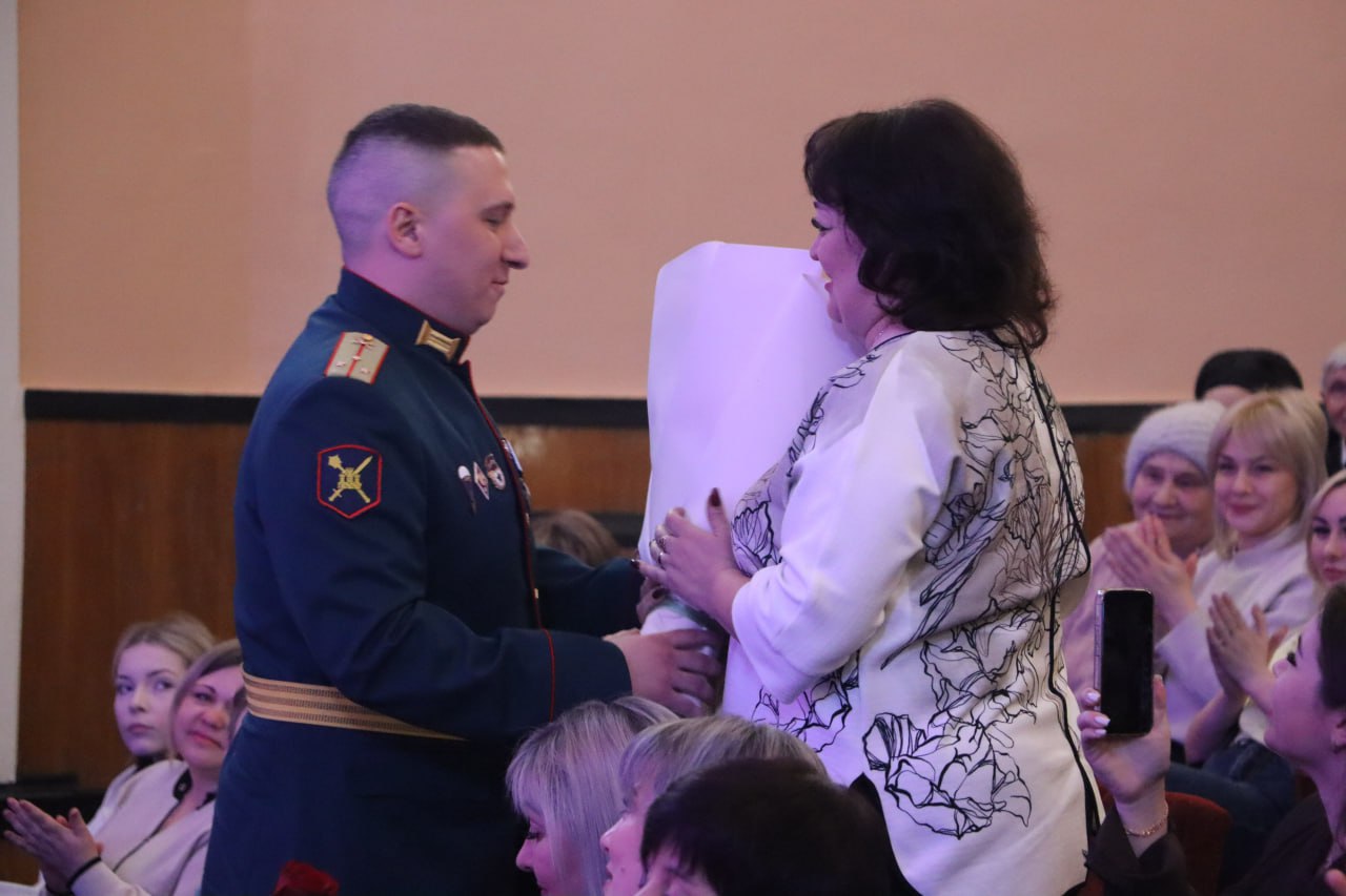 Особенно трогательным получился момент, когда со сцены женщин поздравлял ветеран боевых действий, кавалер Ордена Мужества Владислав Жуков. Его слова о цене мира и спокойствия, о женщинах в погонах и матерях павших воинов тронули весь зал. А после выступления Владислав спустился в зрительный зал и вручил букет цветов своей маме. В этом простом, но таком искреннем жесте было столько любви и благодарности... Глядя на них, думаешь о главном: пусть каждая мама дождется своего сына. А перед теми, кто потерял своих сыновей, защищая Родину, мы все в неоплатном долгу.