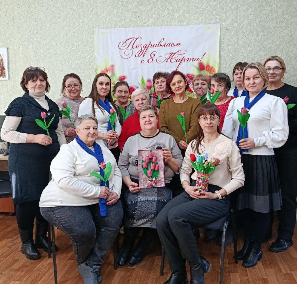Сюрпризом для посетительниц Новопсковского центра общения стал концерт в доме культуры. А представительницы прекрасного пола из Новоайдарского муниципального округа научились создавать цветы из ткани и букеты из бумаги к празднику.
