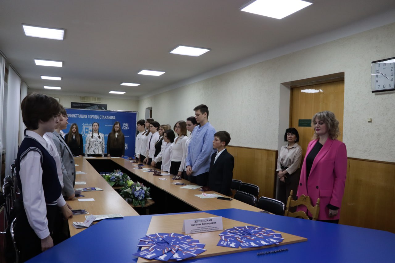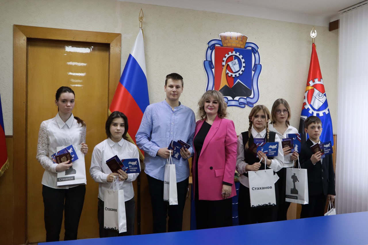 Ребята получили не только главный документ, но и Конституцию России, значки и обложки от «Движения Первых», а также подарки от Администрации города.
